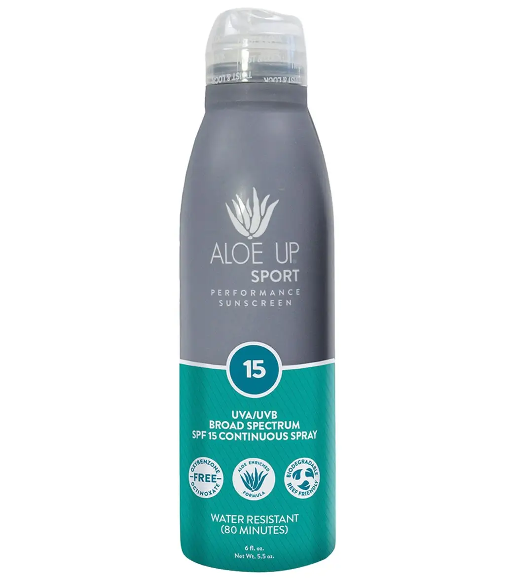 Stay safe from the sun’s harmful rays with this Aloe Up Sport SPF 15 Continuous Spray. Formulated with natural ingredients, this waterproof spray absorbs quickly for a non-greasy application and is built to protect your skin even in the harshest of environments.