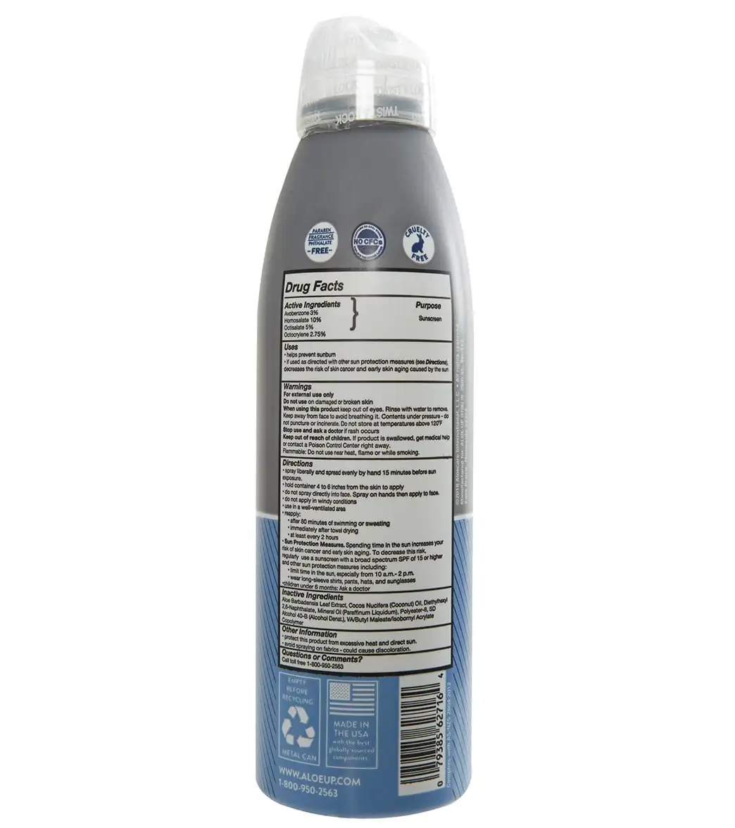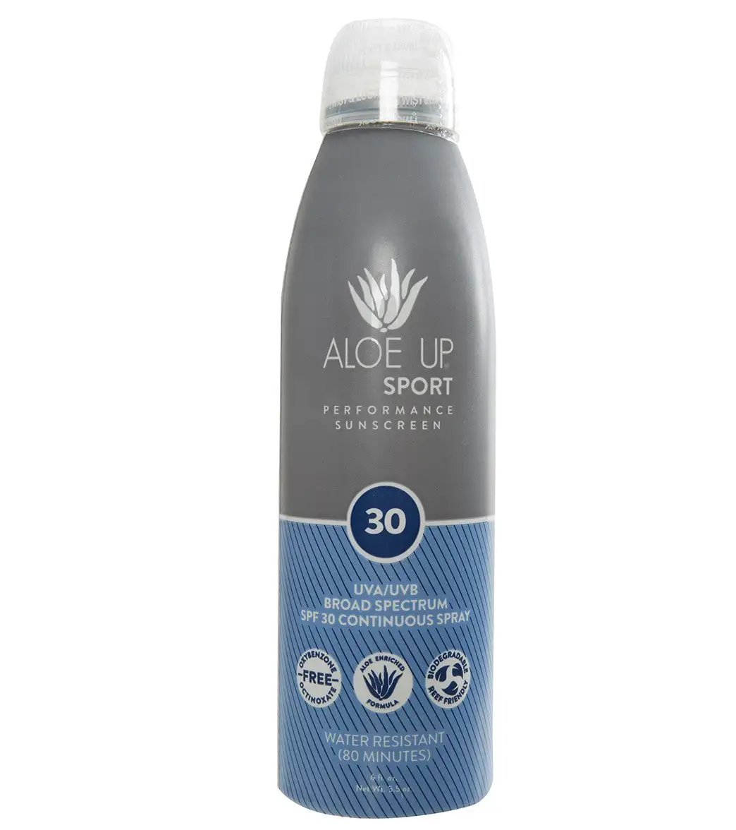 Stay safe from the sun’s harmful rays with this Aloe Up Sport SPF 30 Continuous Spray. Formulated with natural ingredients, this waterproof spray absorbs quickly for a non-greasy application and is built to protect your skin even in the harshest of environments.