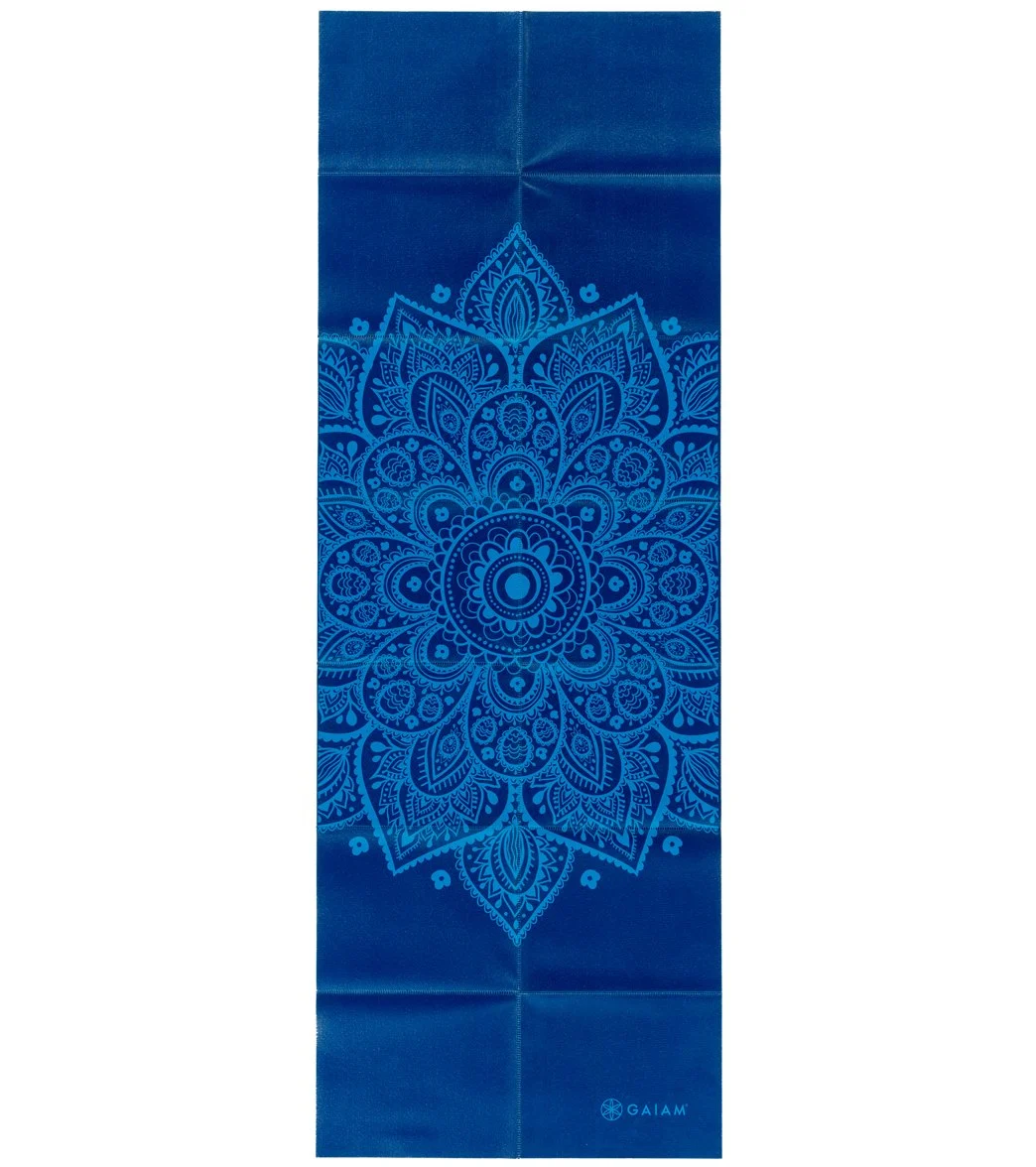 This super compact Gaiam Foldable Blue Sundial Printed Yoga Mat lets you take your practice anywhere. This lightweight mat folds into a convenient, compact square so it’s easy to pack and carry.