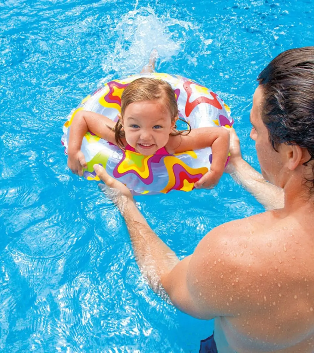 Float away with the Intex Lively Print Swim Ring and soak up the sun all day long.