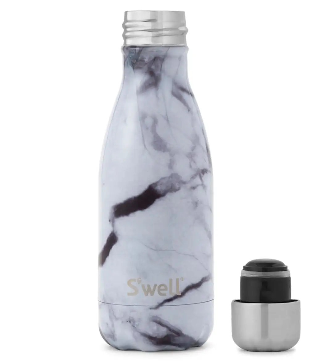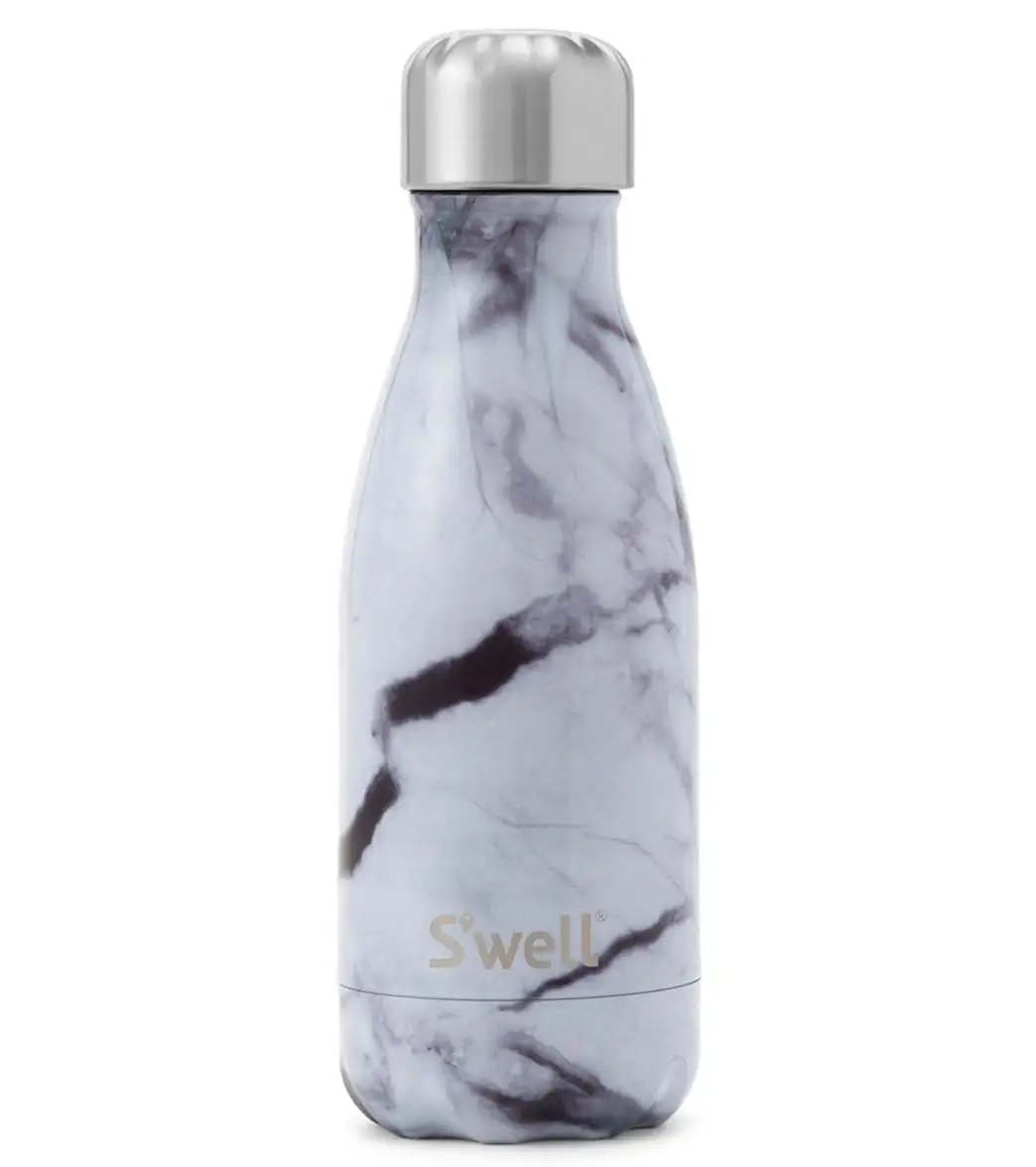 Be part of a beautiful solution. By choosing Sâwell you can reduce the use of plastic water bottles that pose a threat to our environment. Take your coffee or tea on the go with the S’well White Marble 9oz Stainless Steel Water Bottle.Â