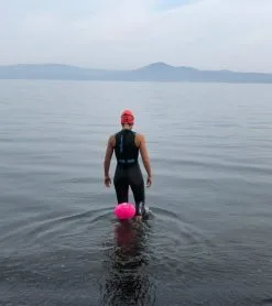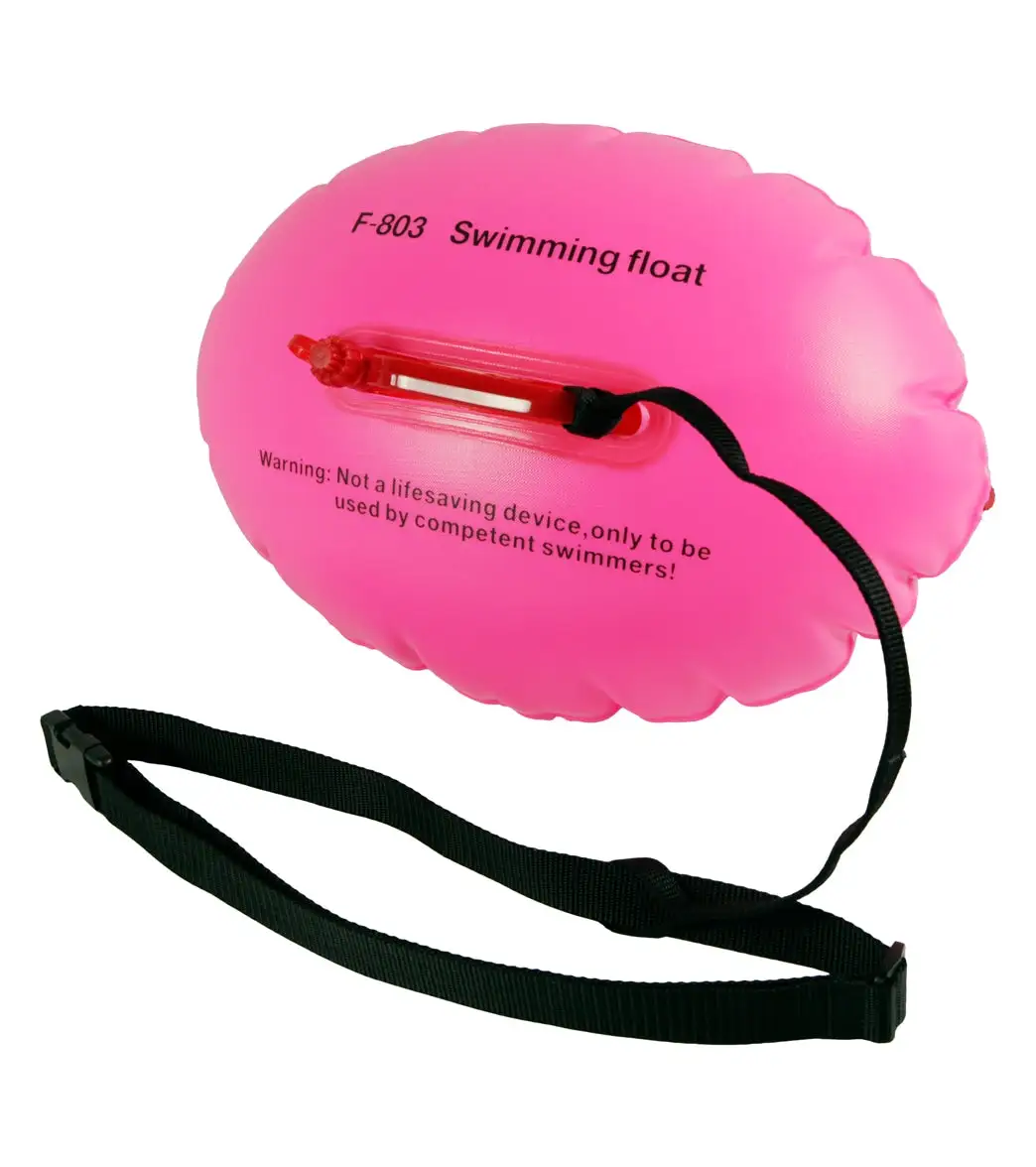 Swim buoy perfect for keeping you safe and visible while swimming in open water. The Tow Float is pulled behind while swimming attached to a waist belt and short leash, and floats out of range of arms and kick zone.