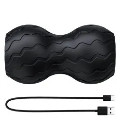 The Theragun Wave Duo is ergonomically designed to provide comfortable treatment for the back, spine, and neck. This portable smart vibrating roller is a uniquely versatile rolling solution.