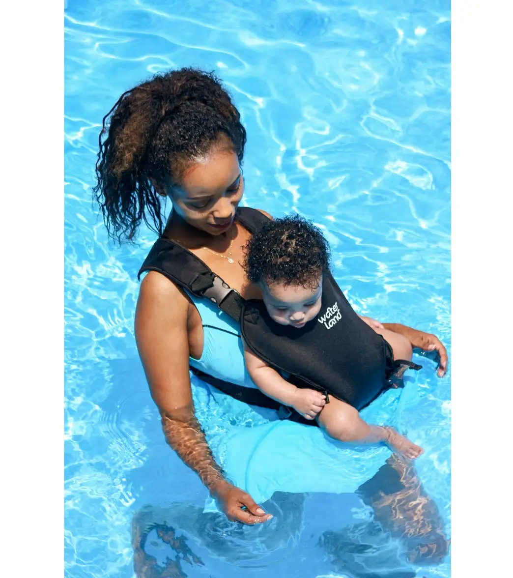The WaterLand Waterproof Baby Carrier is a waterproof, temperature-controlled baby carrier made for front carrying of a baby or toddler while playing in water.